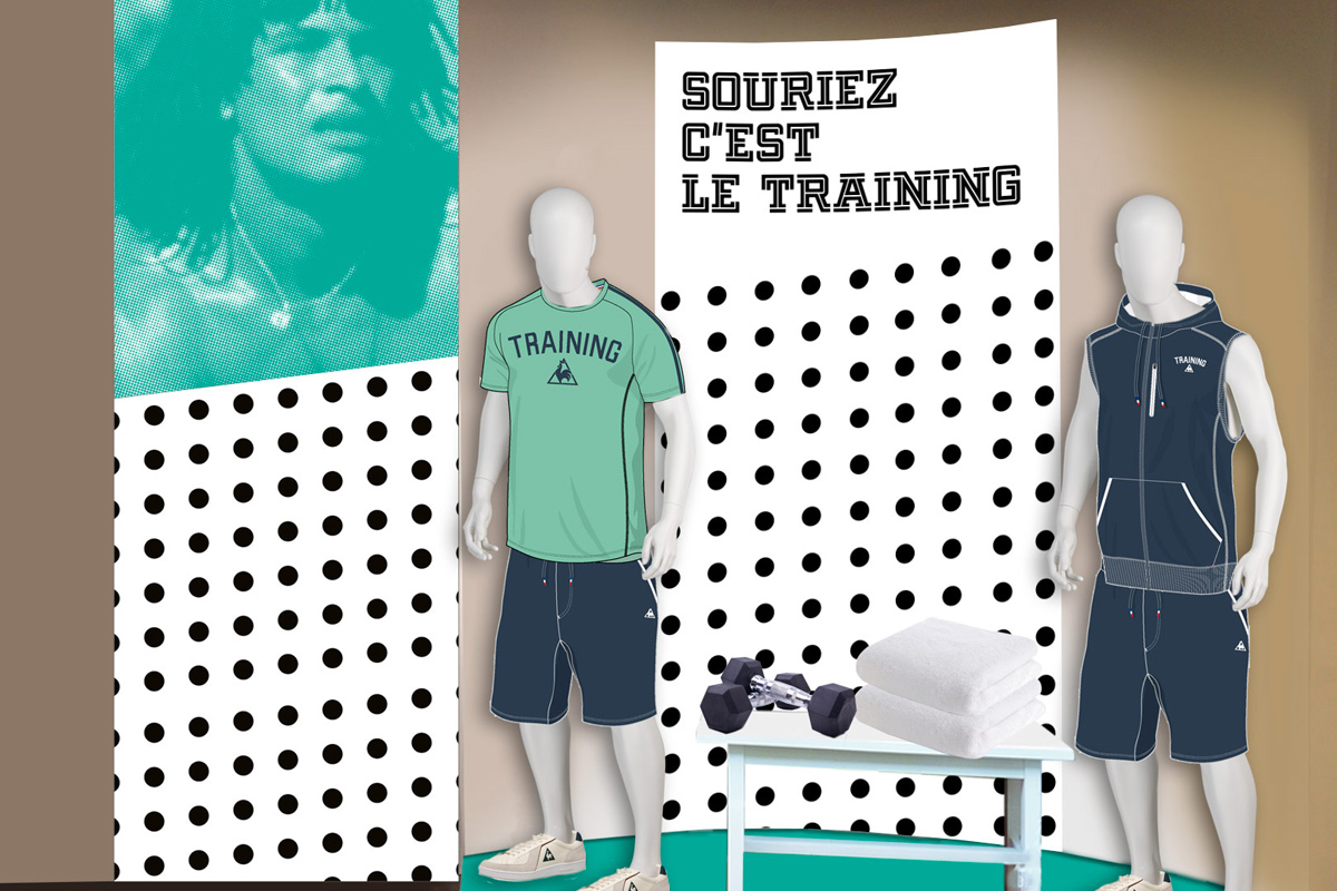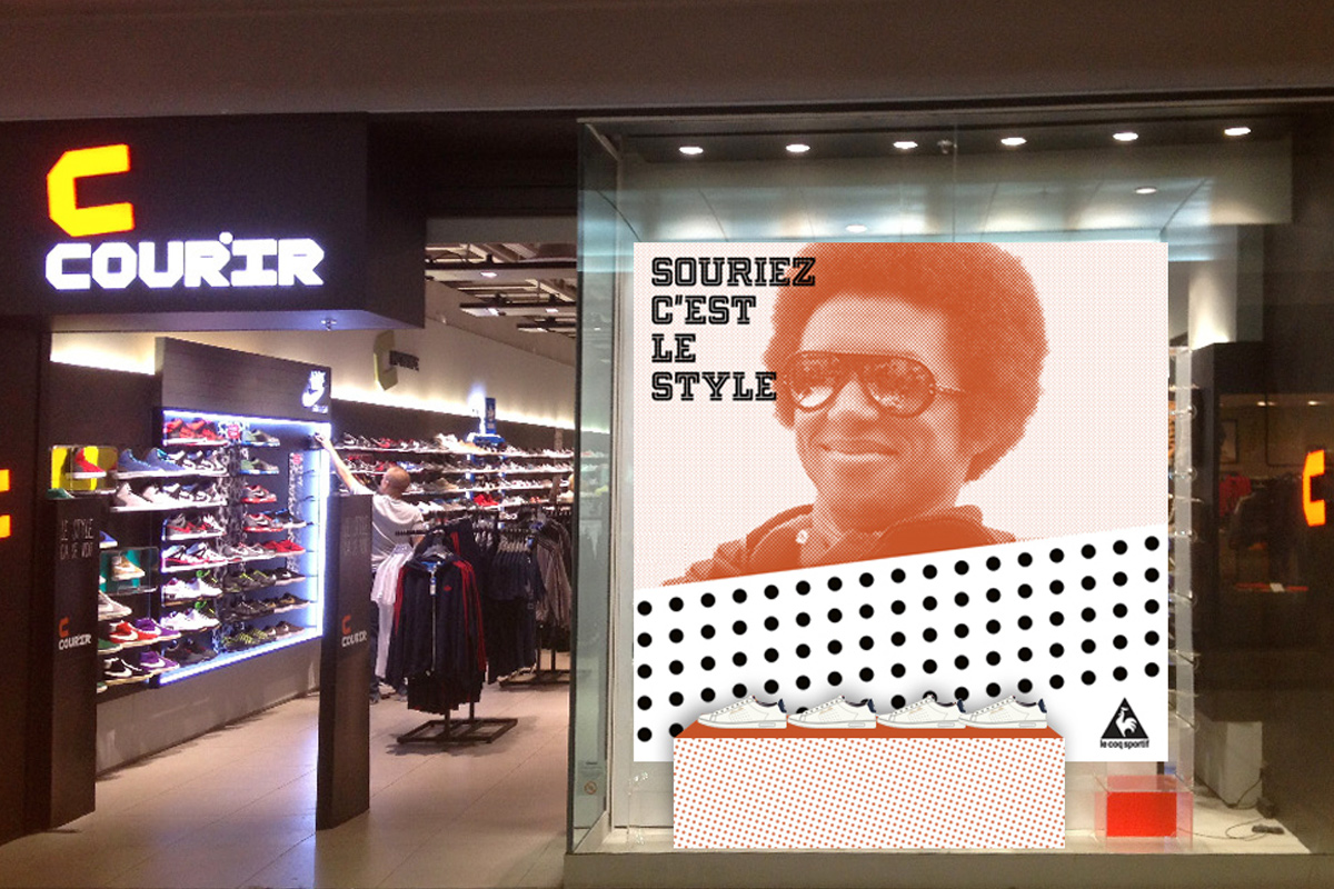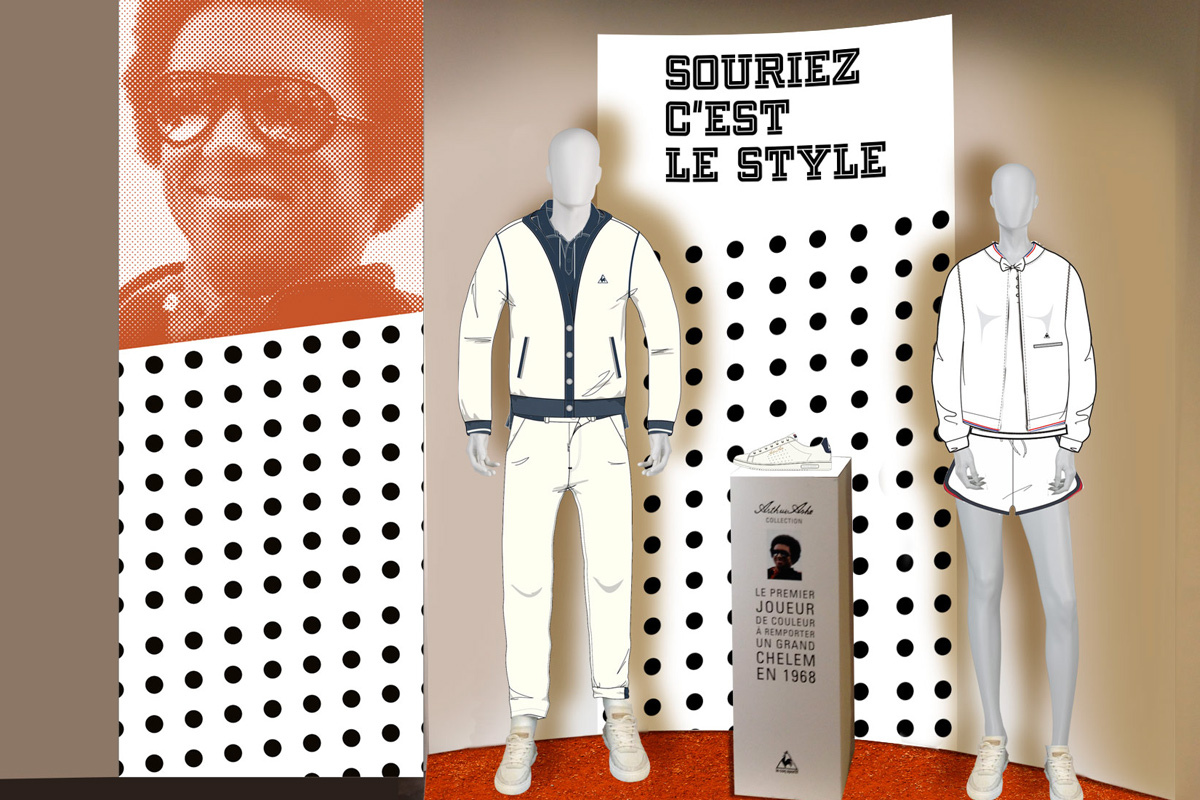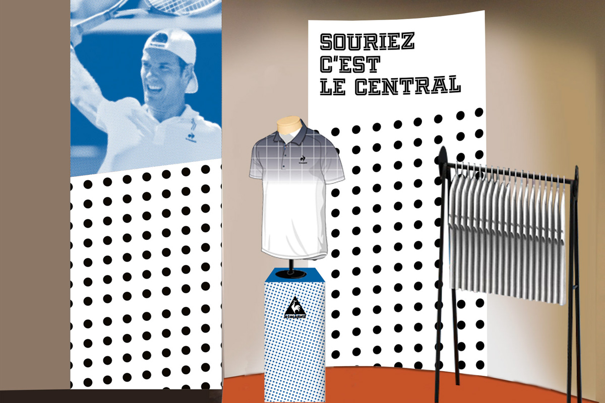 Création d'un concept de communication in store pour fédérer l’ensemble des collections tennis de la marque en mêlant les époques et les ambassadeurs de la marque :